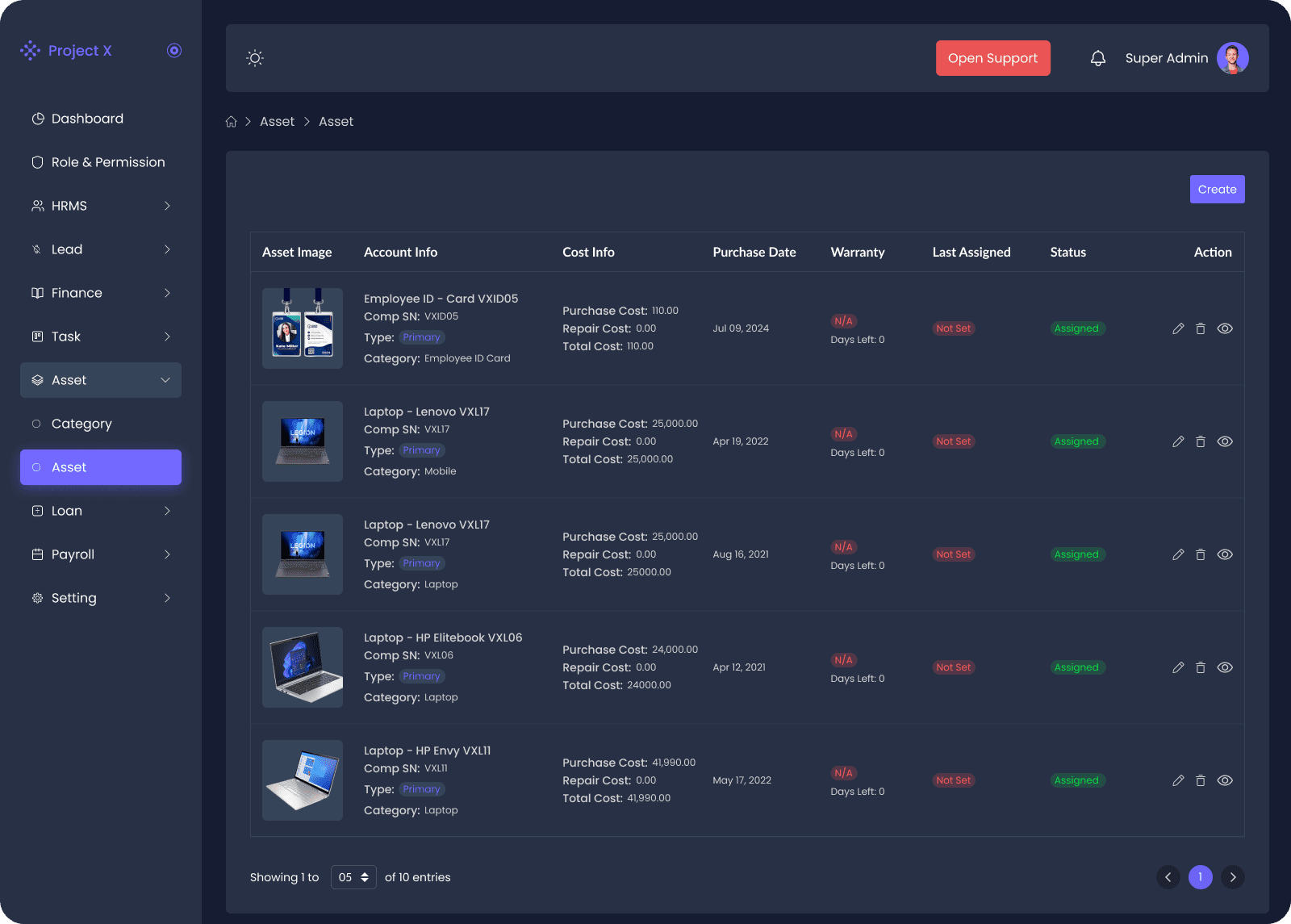 In short, Project X’s Asset Management Module provides a comprehensive solution for tracking, managing, and maintaining your company’s assets effectively.