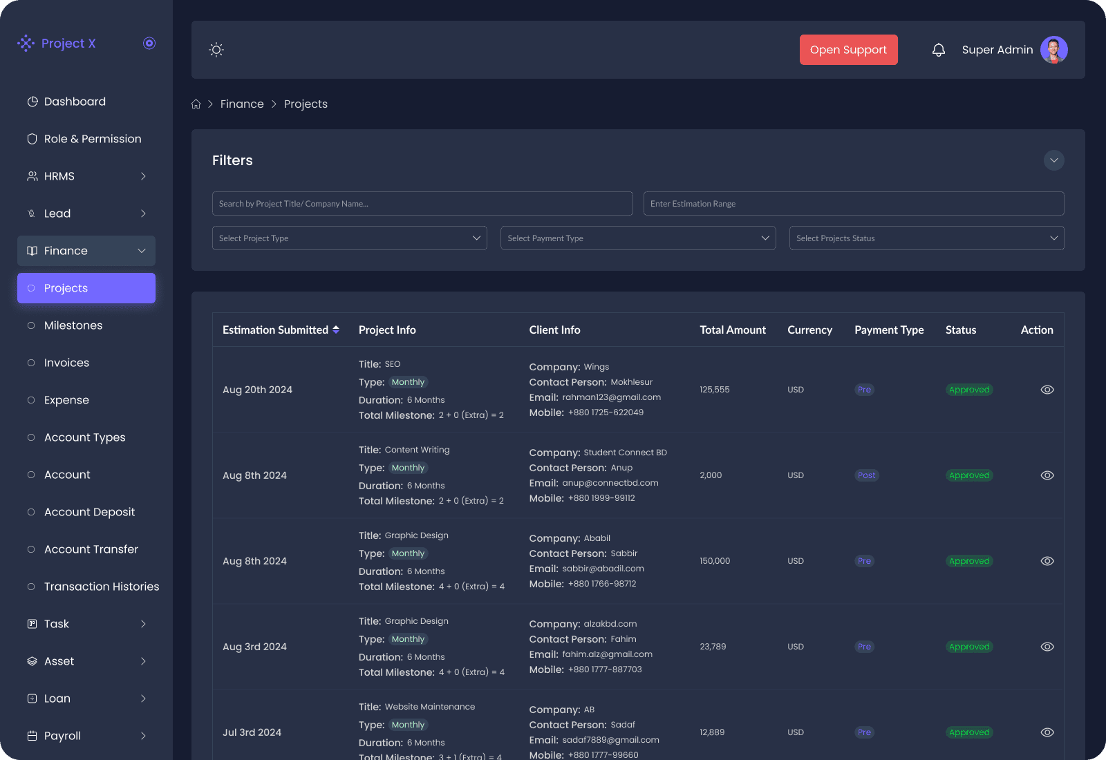 - Project Approval System: Automatically receive converted leads for finance approval, ensuring a smooth transition from sales to project execution.