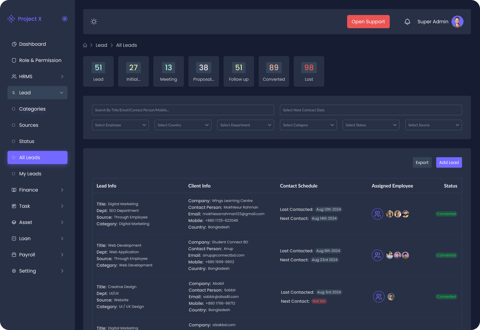 In short, Project X’s Lead Management System provides everything a business development manager needs to grow clients efficiently.