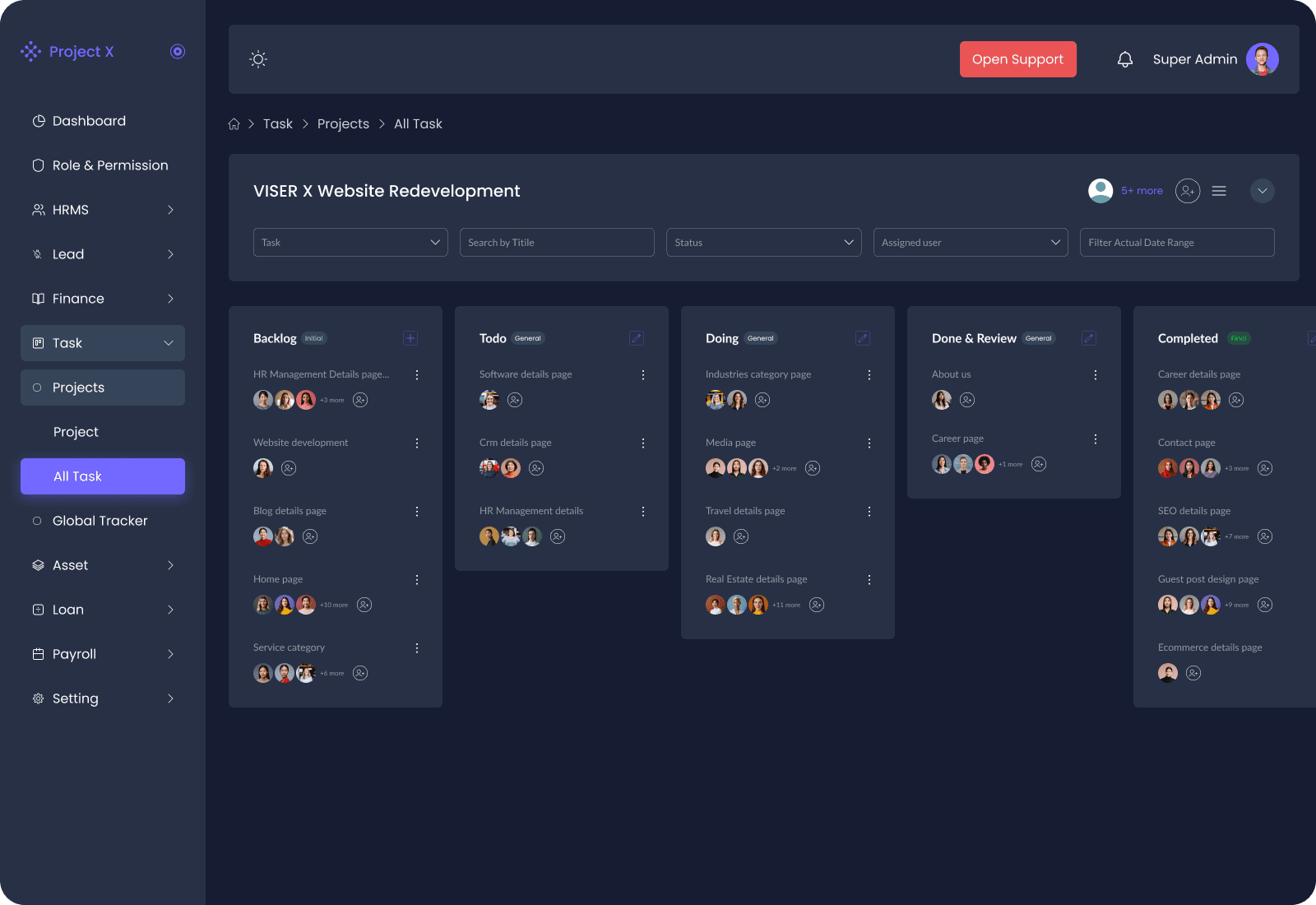 - Task Filtering: Filter tasks by status, team members, and dates for efficient management.